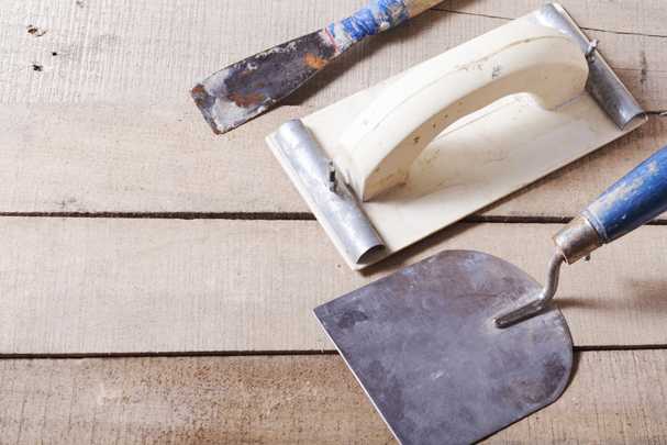 Также нам весьма пригодится дрель со специальной смешивающей насадкой, дюбели и гвозди для закрепления армирующей сетки, правило и шпатели, уровень и отвес для создания идеально ровной поверхности, а также металлическая щетка.