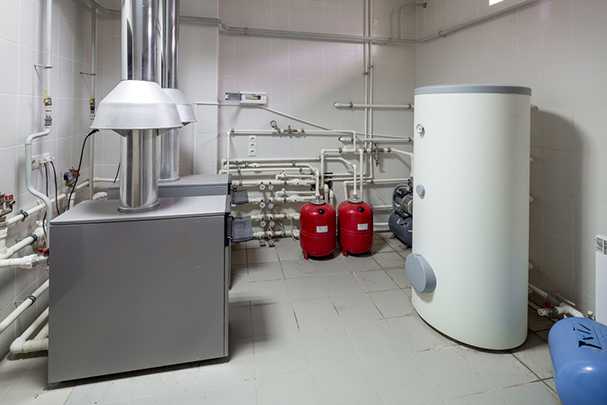 Как правило, это помещение располагается на первом или цокольном этаже. В этом есть немалый смысл. Попробуйте представить, сколько весит оборудование с объемом, например, 300 литров — а именно такие устройства обычно и используются в частных домах. Слабый пол оно может просто-напросто продавить. А первый этаж обычно обладает довольно крепкими составляющим